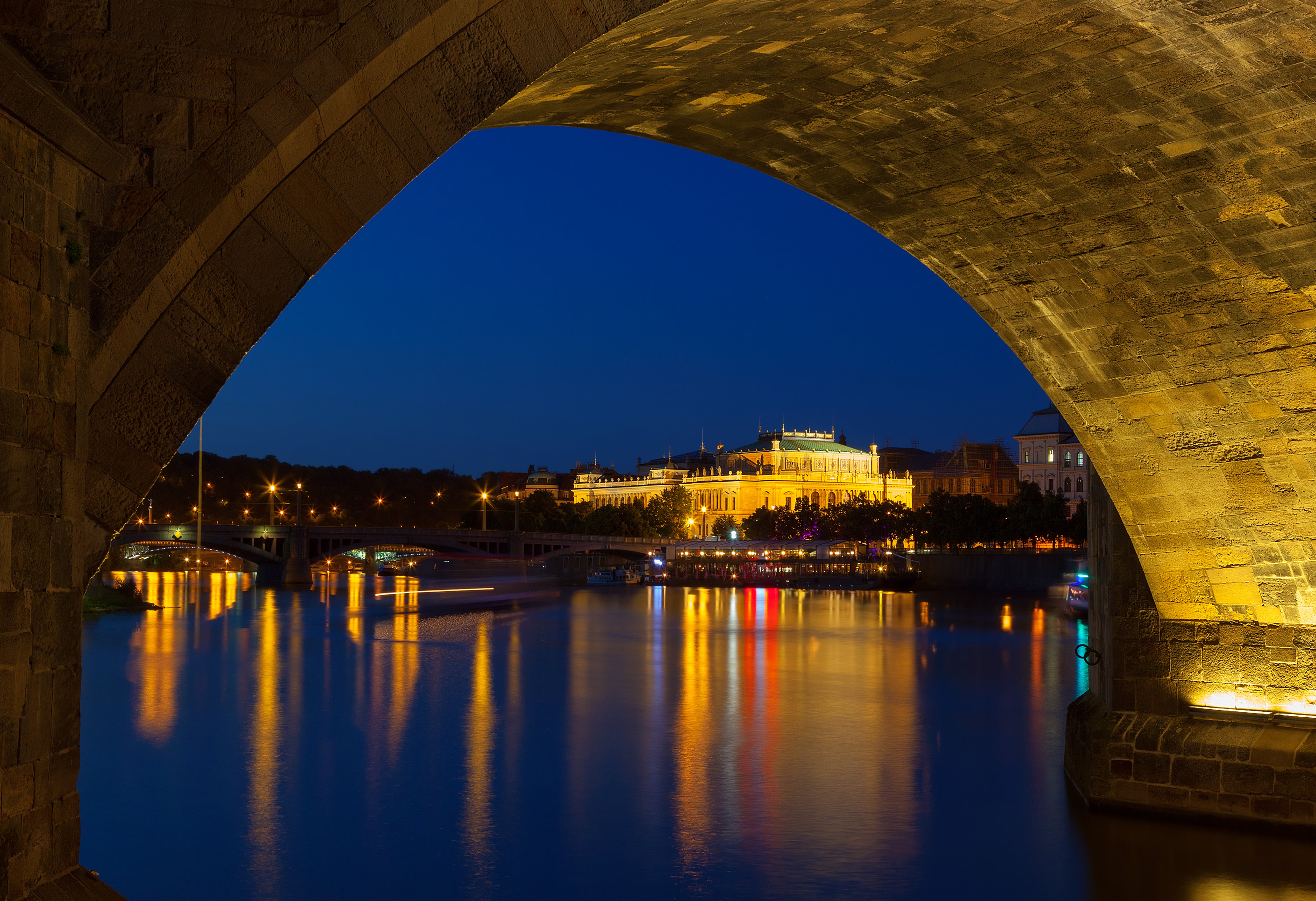 Večerní dvouhodinová plavba na Vltavě kouzelným centrem Prahy. Zažijte jedinečný pohled na panorama Pražského hradu a krásně nasvícené památky Prahy. Neomezený raut za doprovodu hudby.